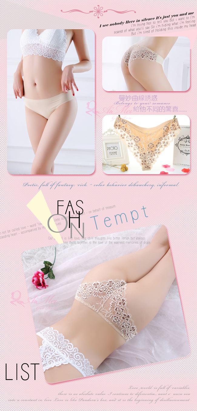 ►您現在的位置:首頁>寵愛迷戀!無痕蕾絲花瓣拼接冰絲三角褲﹝膚﹞