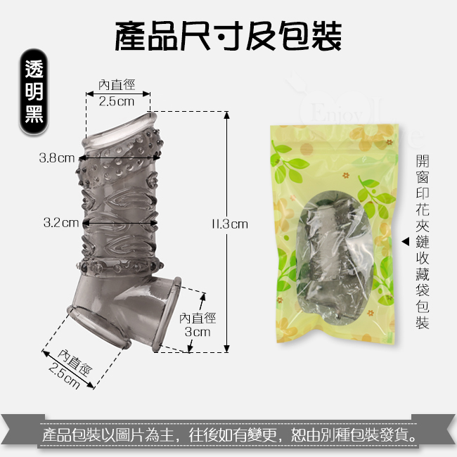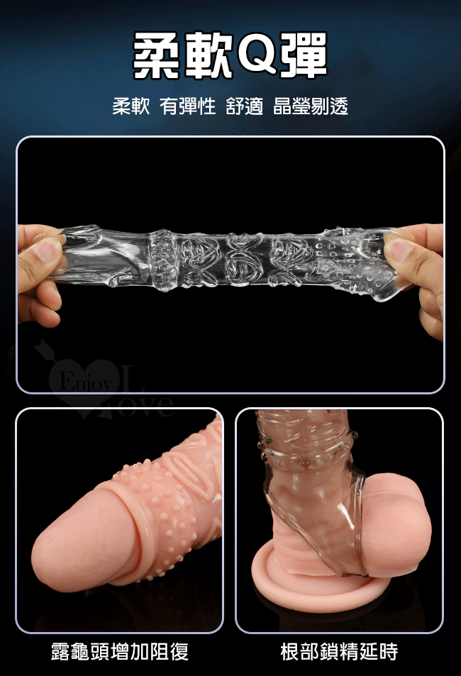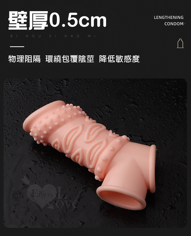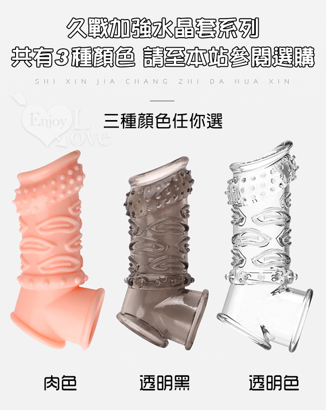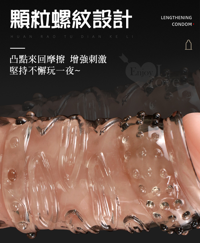 | Enjoy Love ‧ 久戰加強 顆粒螺紋刺激 增粗延時助性鎖精水晶套 - 肉感膚質﹝透明黑﹞
