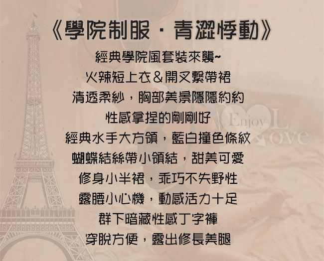 ※ 商品內容:上衣+短裙+丁字褲。