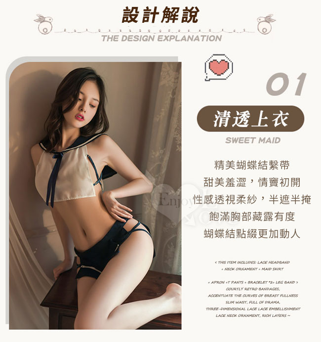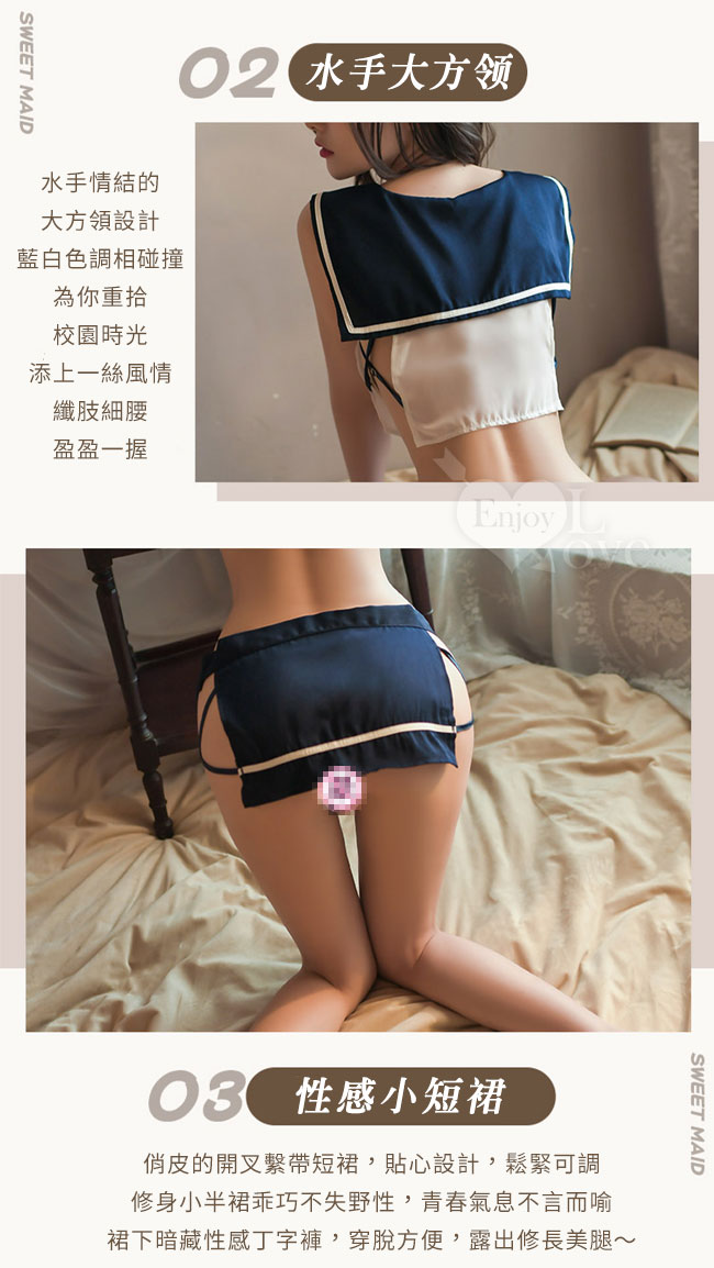 ►您現在的位置:首頁>學生角色扮演服!輕透柔紗大方水手領短上衣兩側裸空性感短裙三件組