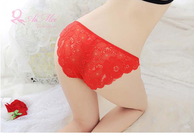甜蜜情人!細帶斜邊花漾蕾絲三角褲﹝紅﹞