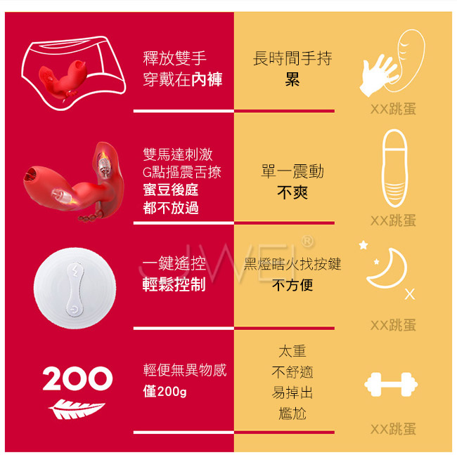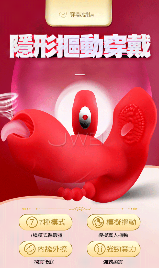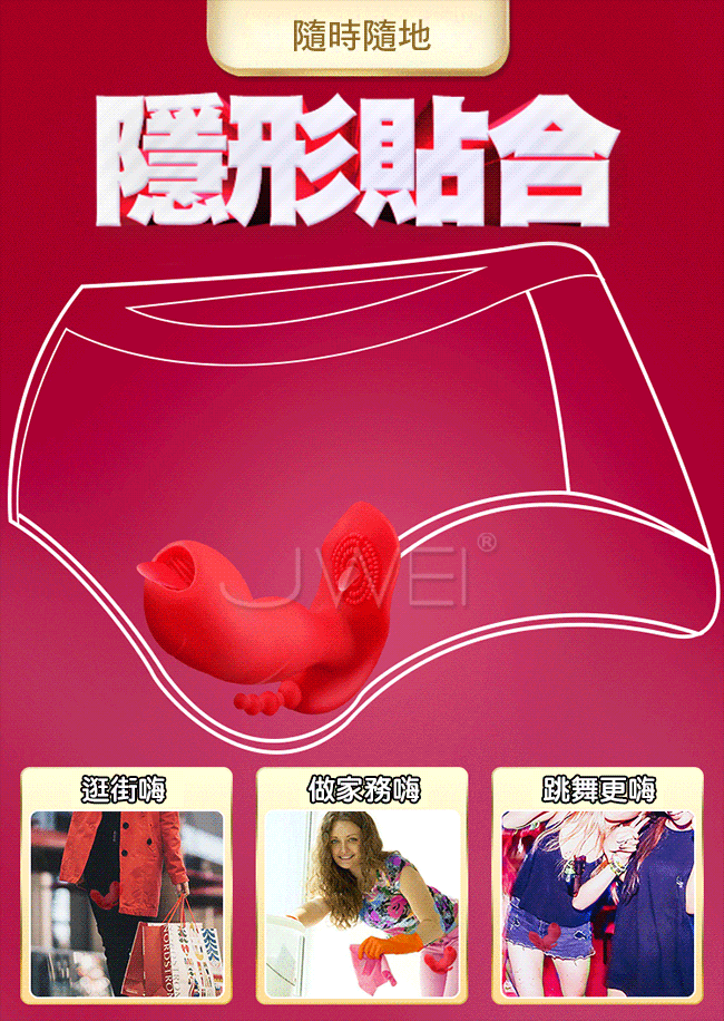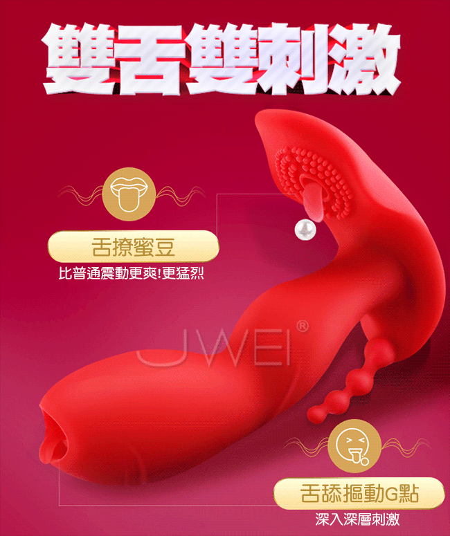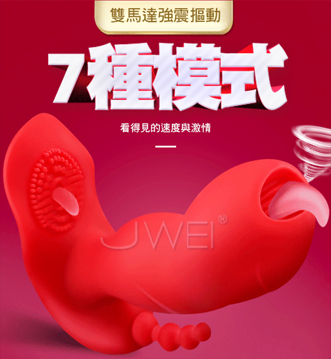隱形摳動穿戴雙舌雙刺激舌撩蜜豆比普通震動更爽!更猛烈,舌舔摳動G點深入深層刺激。後庭浪珠肛塞也能一起爽喔~隨時隨地隱形貼合雙馬達強震摳動7種模式看得見的速度與激情。符合亞洲女性的生理結構私處不撐大~