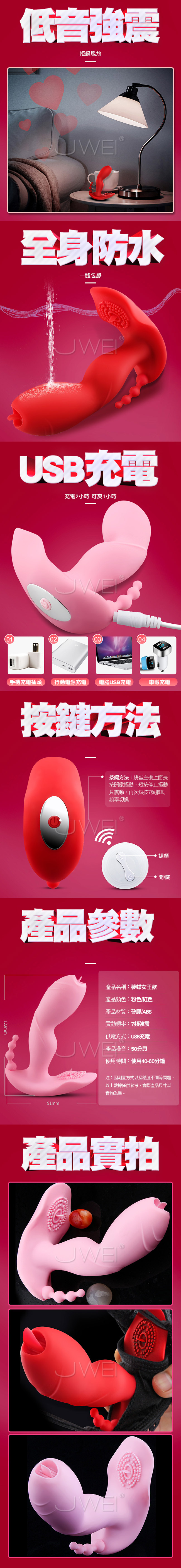 ■尺寸:大小詳如圖片標示 ■材質:矽膠、ABS ■電源:USB充電 ■功能:7段變頻震動、無線遙控、隱形穿戴