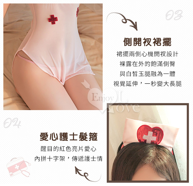 ►您現在的位置:首頁>護士角色扮演服!裸空爆乳亮片乳貼桃心美背側開衩裙襬四件式套裝