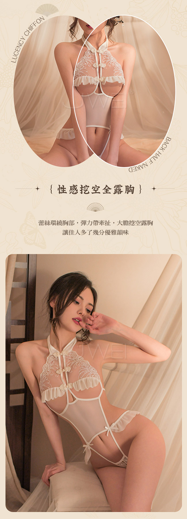 ►您現在的位置:首頁>風韻佳人.古典旗袍刺繡花邊挖空露乳開襠露臀連體衣(白色)