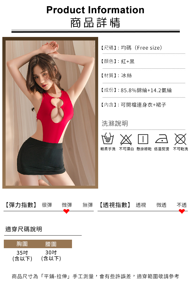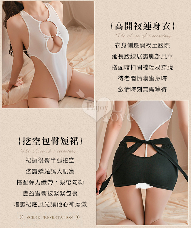 秘書角色扮演服!冰絲削肩8字雙重挖空高衩掛釦可開襠兩件組﹝紅﹞
