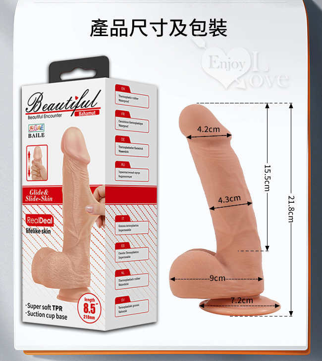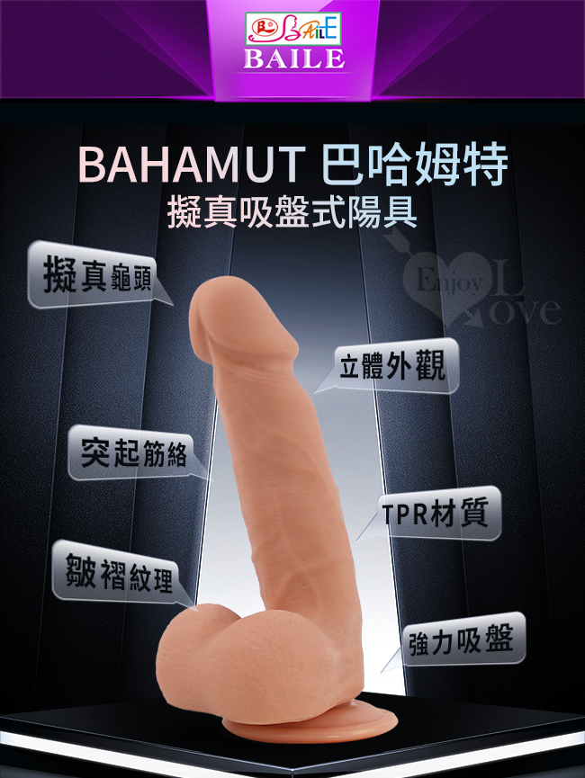 【BAILE】Bahamut 巴哈姆特 凸筋皺摺柔韌回彈擬真吸盤式陽具﹝解放雙手的快樂﹞(8.5吋)