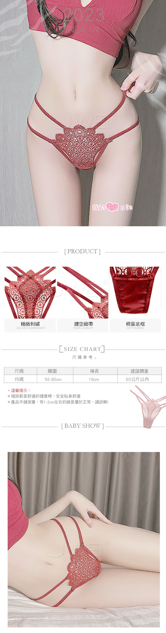 ◇◆名媛款-美撼凡塵.鏤空刺繡交織細帶誘惑丁字褲-酒紅色◆◇