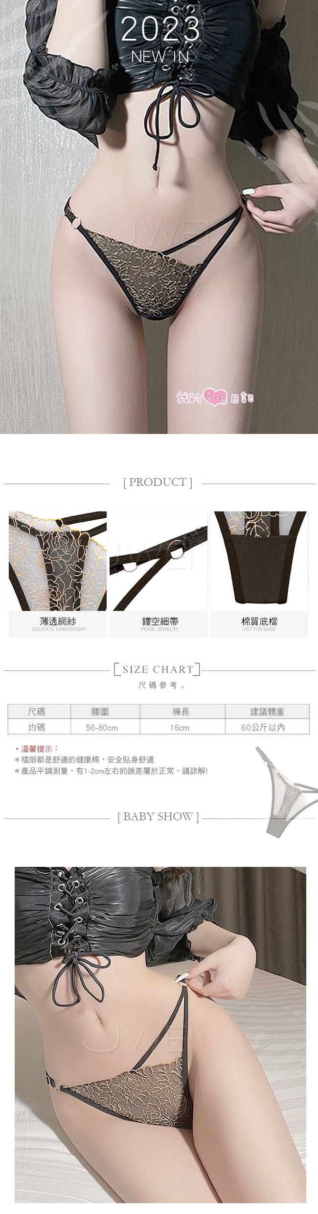 ◇◆香肌玉膚.花漾v型鏤空顯腰可調節誘惑丁字褲-黑色◆◇