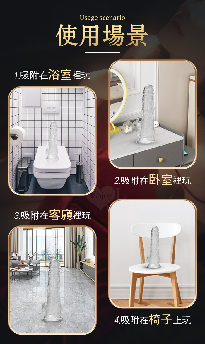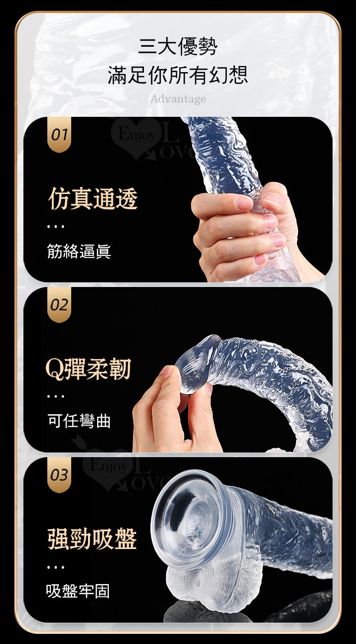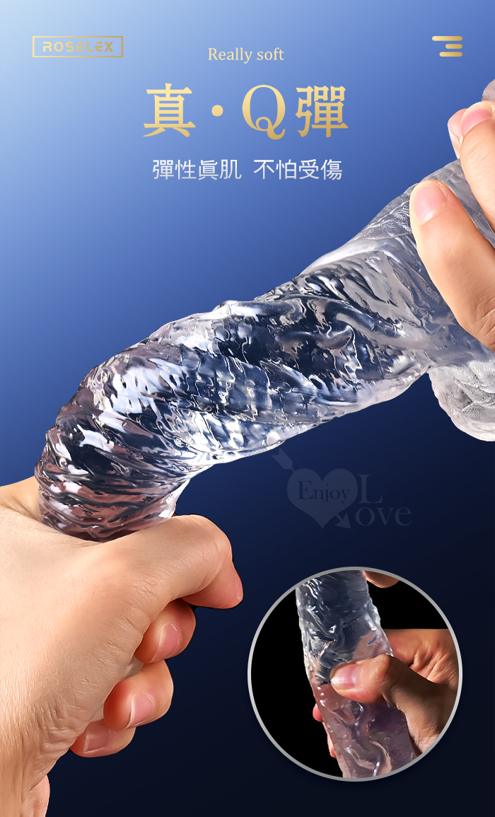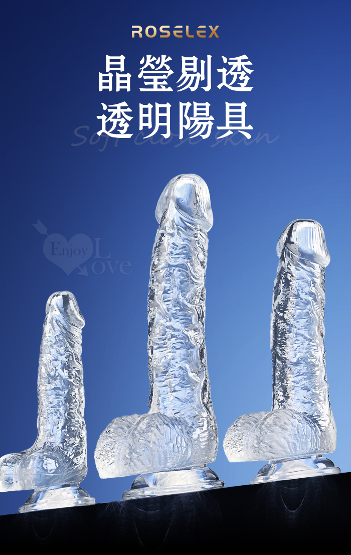 | ROSELEX 勞樂斯 ‧ 不僅好看也要好用 逼真筋絡 Q韌彈軟 牢固吸盤 透明水晶老二棒﹝小﹞