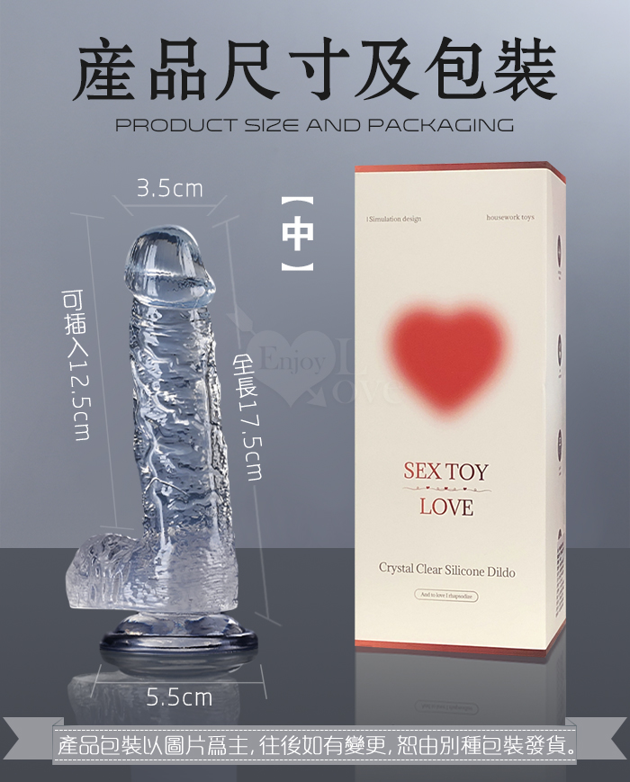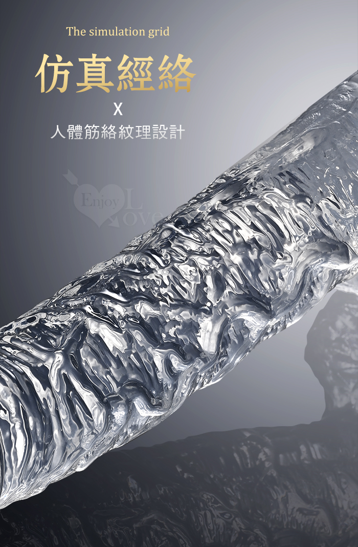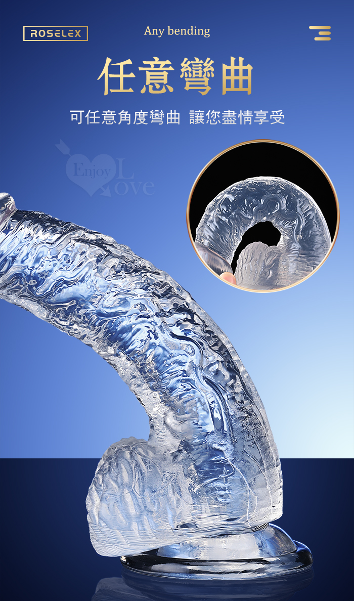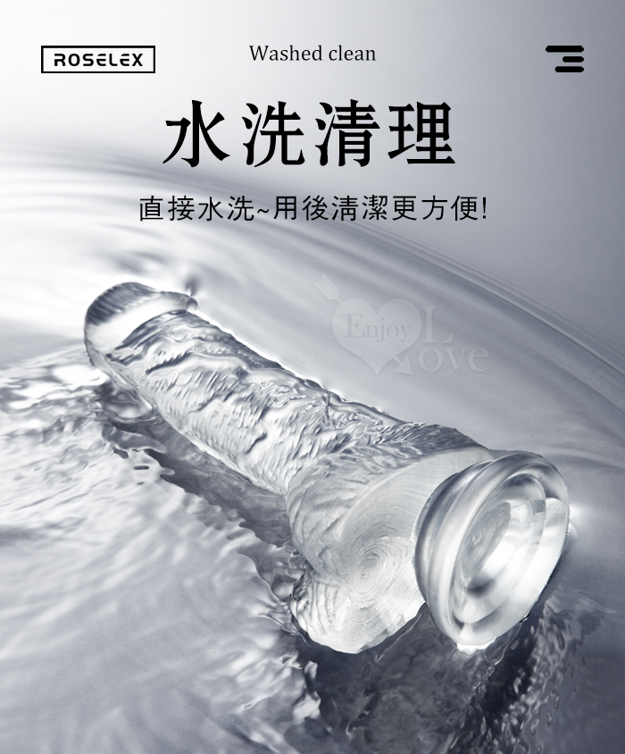 ROSELEX 勞樂斯 ‧ 不僅好看也要好用 逼真筋絡 Q韌彈軟 牢固吸盤 透明水晶老二棒﹝中﹞
