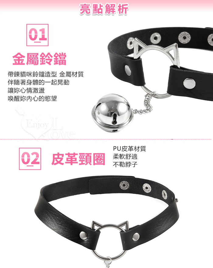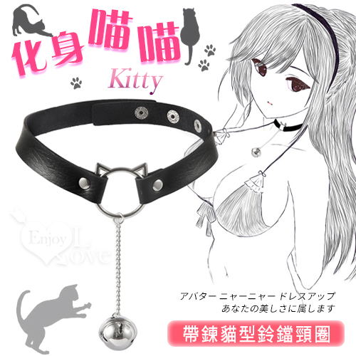 Kitty 化身喵喵 ‧ 帶鍊鈴鐺金屬鈕扣皮革頸圈