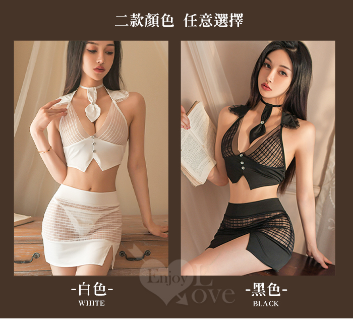 ►您現在的位置:首頁>秘書角色扮演服!網紗V字格紋透視短裙四件式套裝﹝白﹞