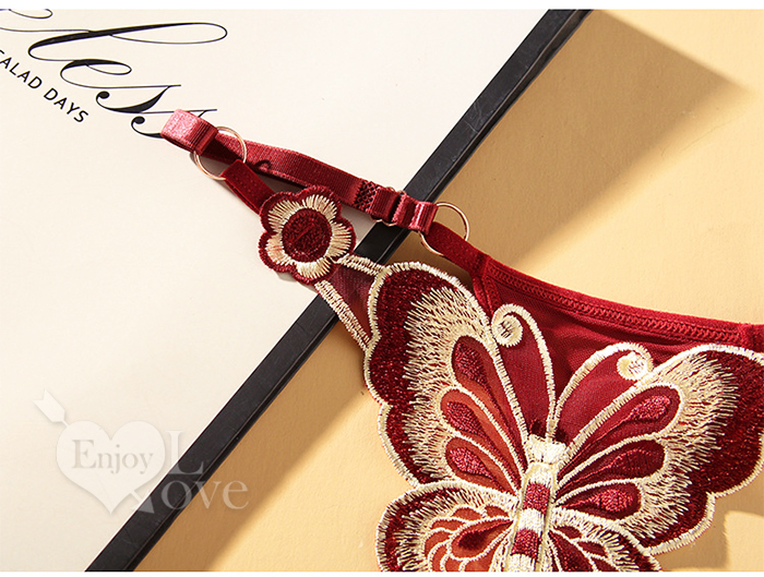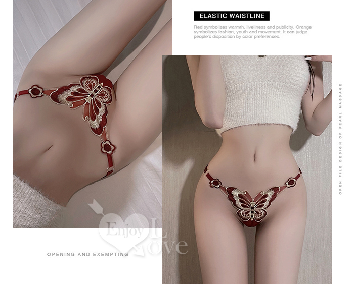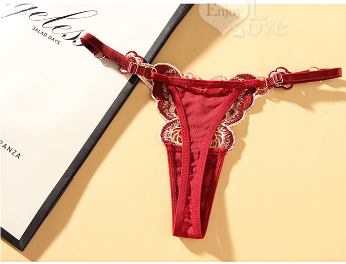 ►您現在的位置:首頁>可調節彈力帶蝴蝶刺繡輕盈透氣T字褲﹝酒紅﹞