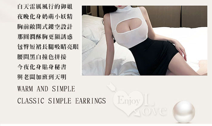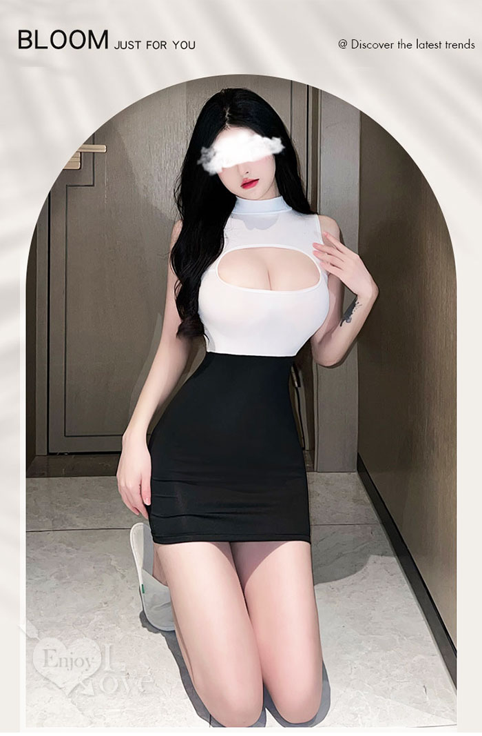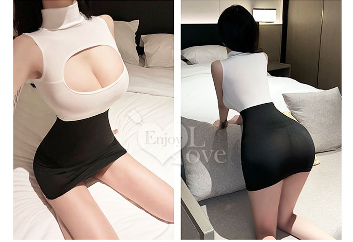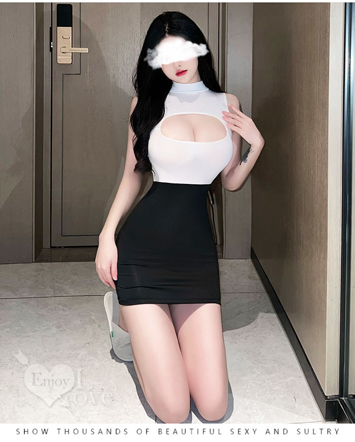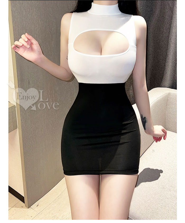 ►您現在的位置:首頁>秘書角色扮演服!敞開式鏤空雪乳黑白撞色拼接包臀裙兩件組