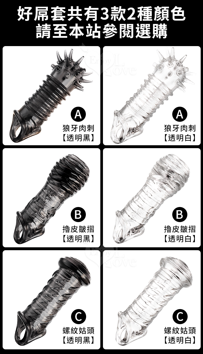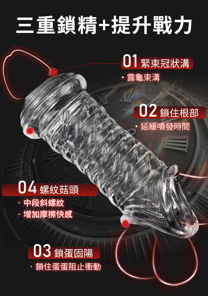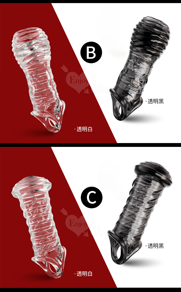 Enjoy Love ‧ Dick 好屌套C!螺紋菇頭+36斜紋 加粗增大套蛋不洩提升戰力﹝透明黑﹞