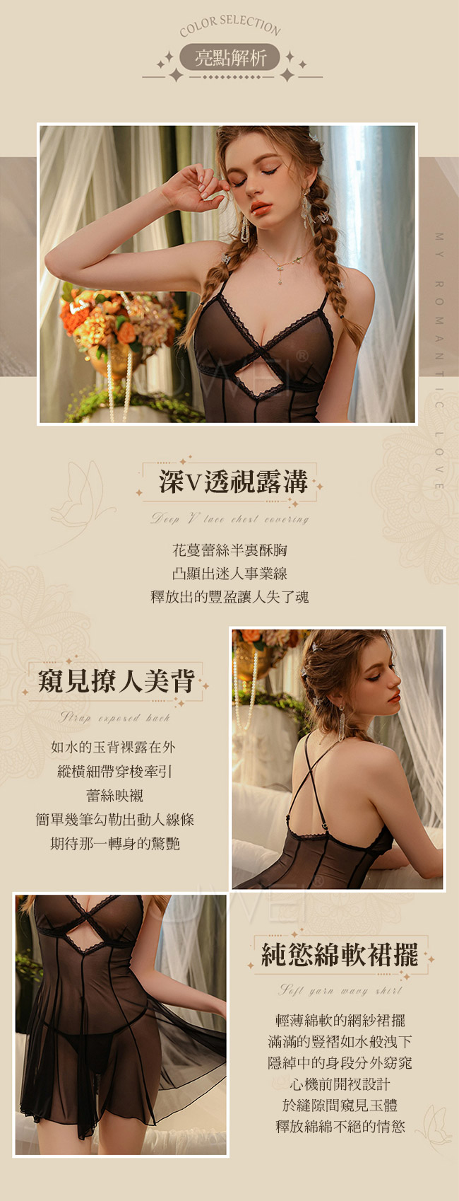 迷離奇夢.性感透視撩撥吊帶紗裙2件組(黑色)