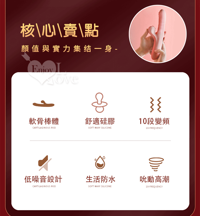 | LILO 來樂 ‧ 愛親親の夢露 10X10頻強震+吮動多功能按摩棒﹝內外刺激/矽膠親膚任彎/USB充電﹞櫻花粉