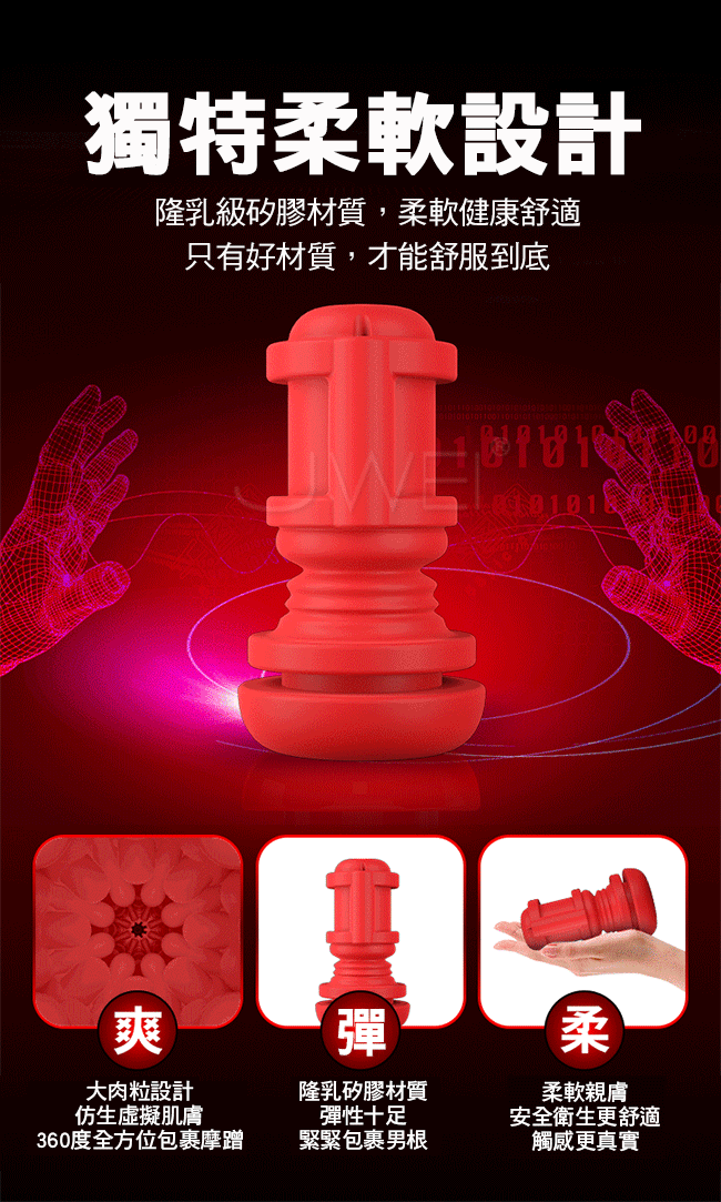 科技顛覆未來,騎士擼爆飛機杯,每一次都是享受,深喉口含體驗,一鍵爆發,擬真女性體內膨脹收縮,激顫快感席捲全身;暢玩通道,自動伸縮蠕動,深喉含吞,進入好的嘴裡具有強烈又愉悅的滿足感,肉粒紋路環繞體驗含住刺激;緊緻快感, 柔滑私處通過密布,大顆粒群體驗真實觸感,感受被包裹夾吸的快感;獨特柔軟設計,隆乳級矽膠材質,柔軟健康舒適只有好材質,才能舒服到底!