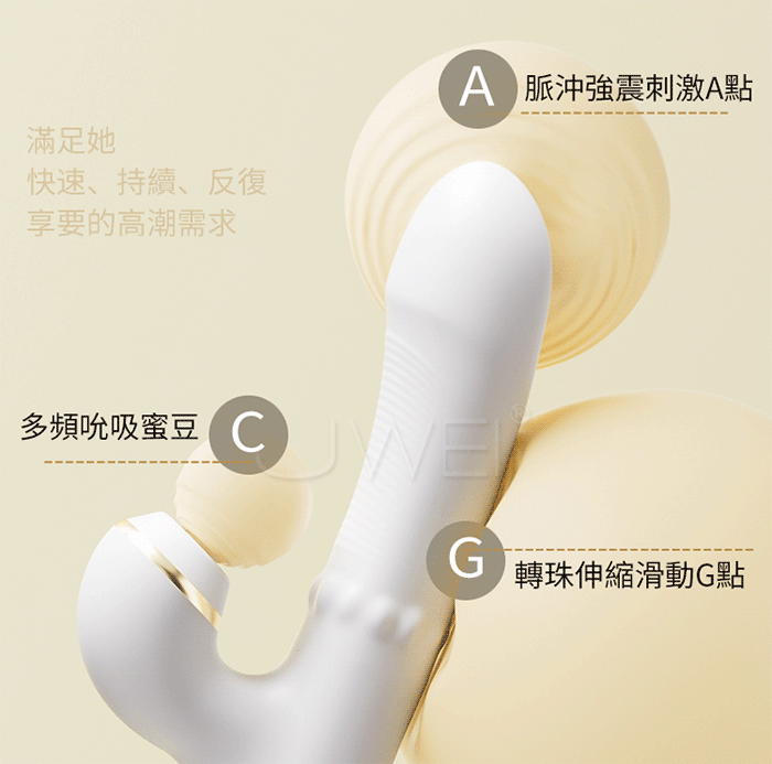 五重快感持續高潮,150種玩法,你想要的我都有,反覆持久高潮;擬真伸縮46MM長距離,A點G點同時更快高潮;轉珠上下滑動,360度轉珠環繞急速上下伸縮;酥麻強震,被征服的脈衝震擊,沉浸其中的愉悦,多頻空氣吮吸,吻吸蜜豆,喚醒本我沖動;擬真伸縮轉珠,循環立體爽感,360度環繞轉珠軸承上下滑動,轉珠環繞內壁,摩擦伸縮G點,12顆豐滿滾珠節奏性滑動剮蹭敏感,內外夾擊愉悅滿足!
