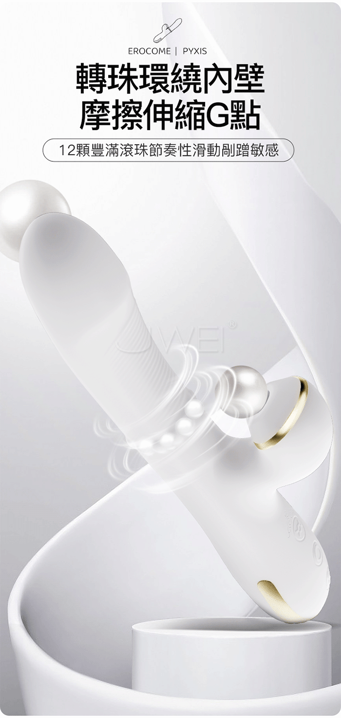 | EROCOME伊珞.PYXIS羅盤座伸縮轉珠滑動吸震內外激爆高潮按摩棒-白色