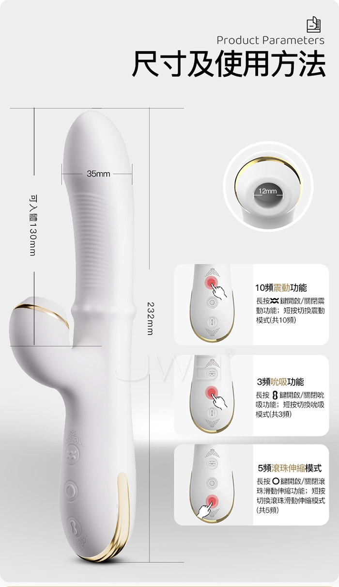 ■特色:5頻伸縮轉珠滑動、3頻吮吸、10頻震動、防水低噪