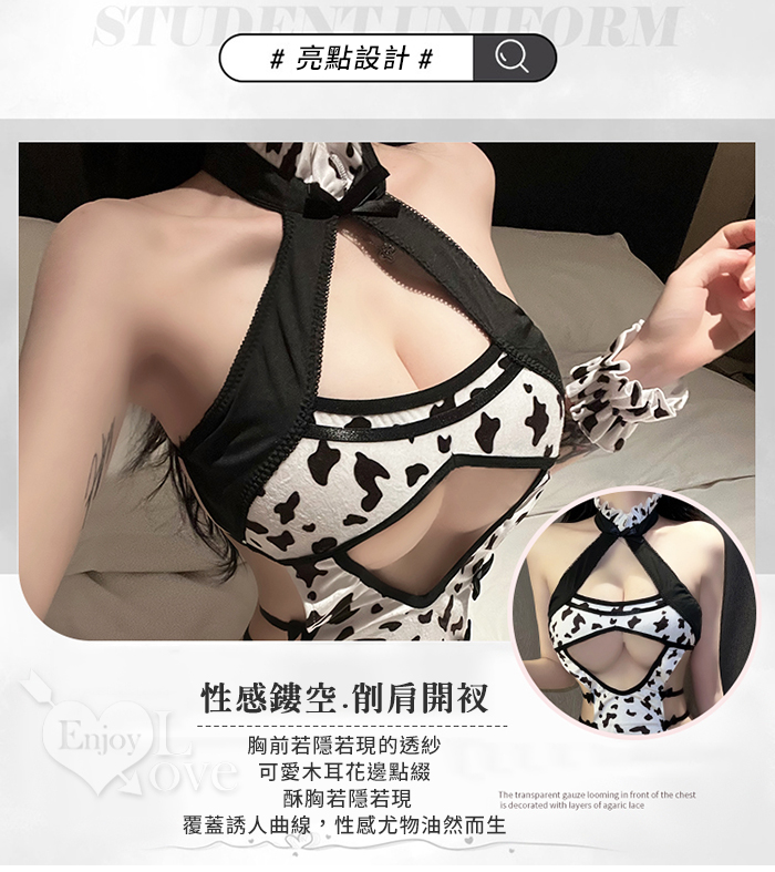 萌系奶牛角色扮演服!旗袍式木耳花邊領削肩開衩裙四件式套裝﹝粉﹞