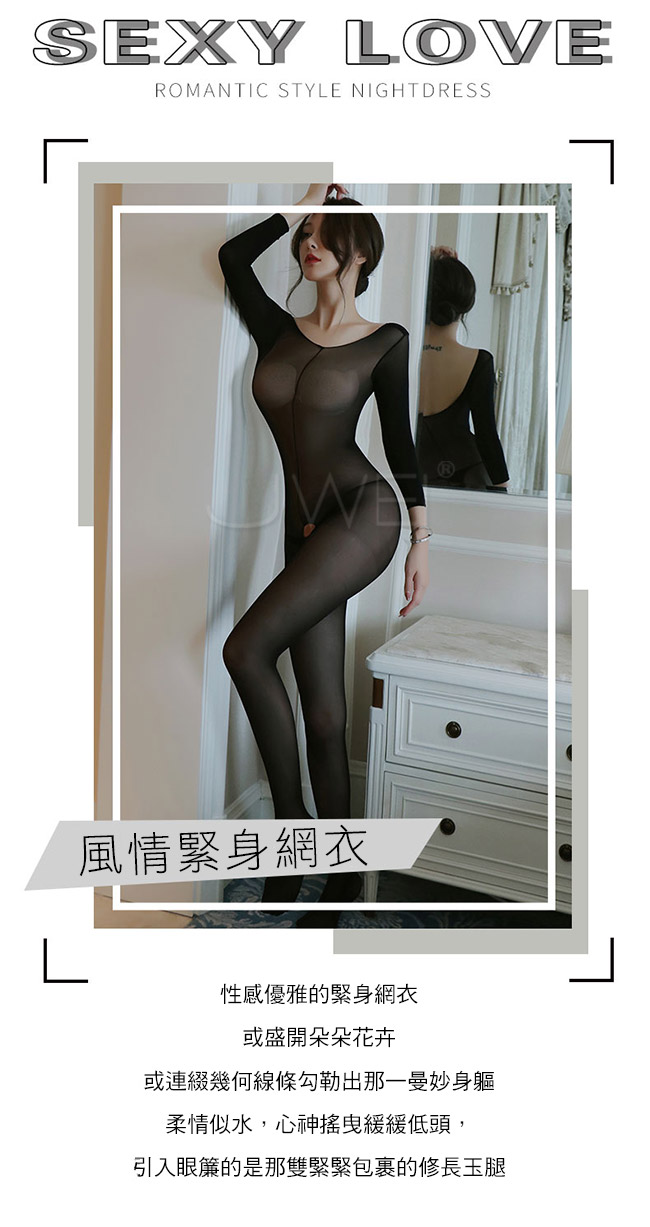 ◇◆性感阻擊.性感透視大圓領露背開襠連身貓裝(黑色)◆◇