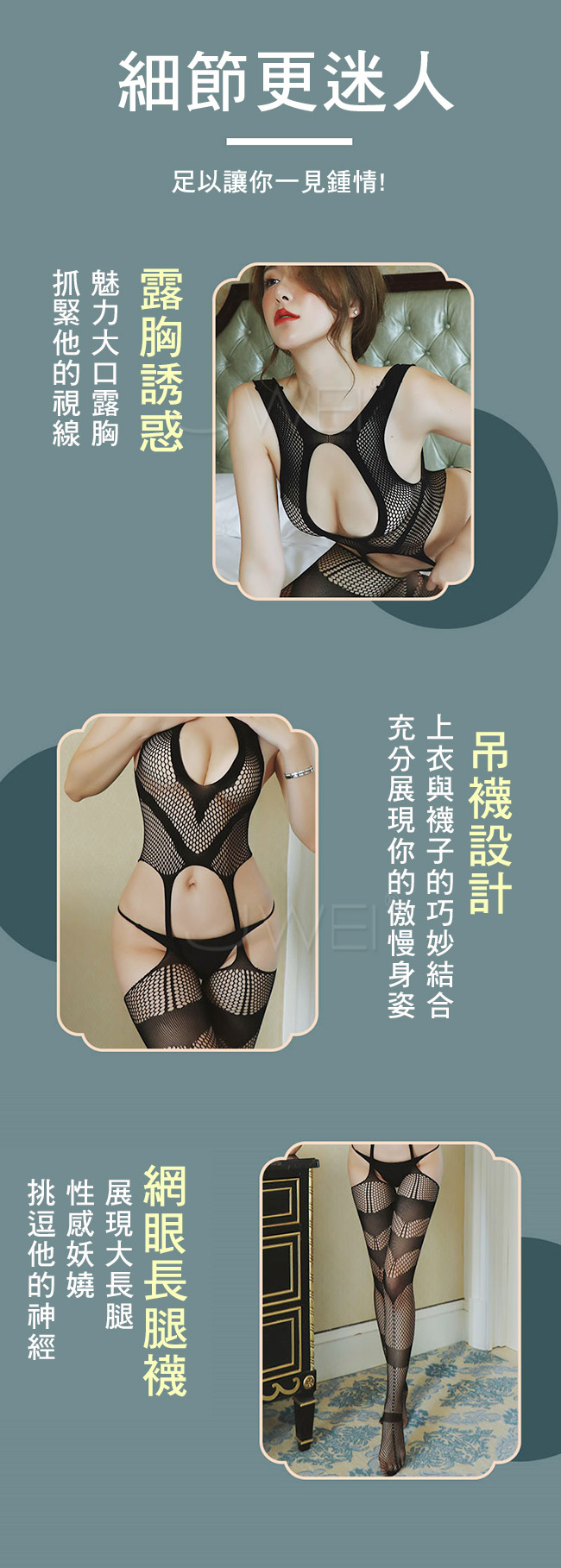 ►您現在的位置:首頁>靜待愛戀.性感胸前圓孔透視鏤空美背吊襪連身貓裝