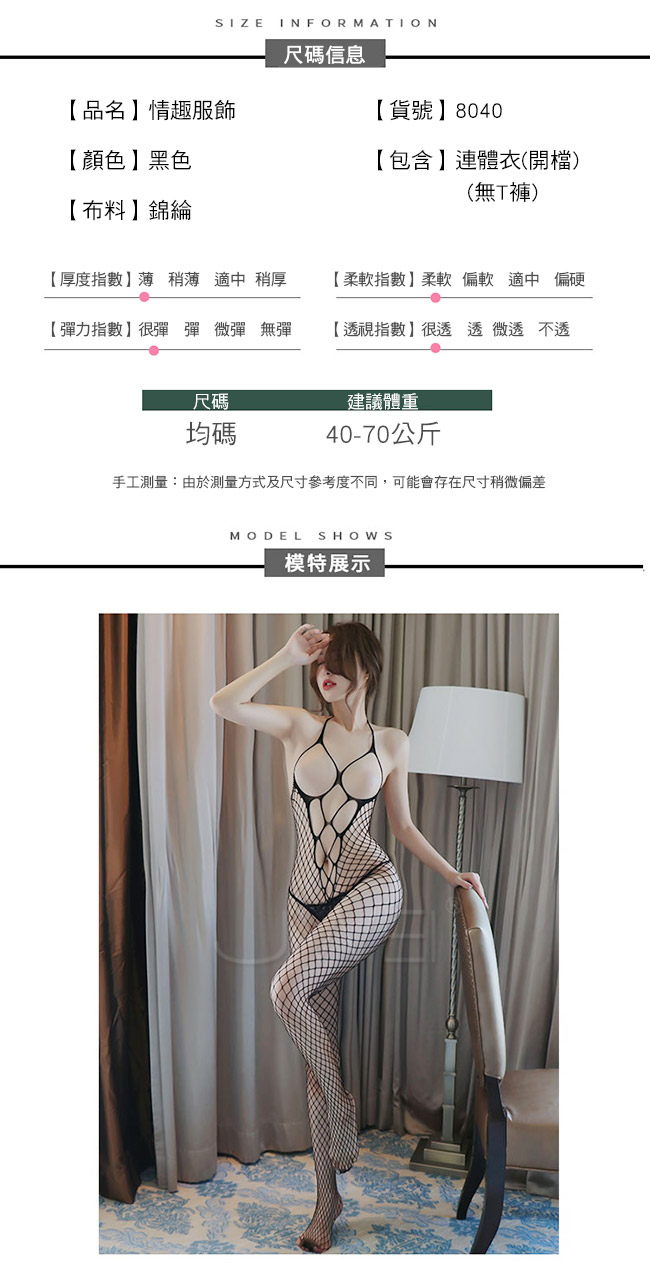 全身細線網眼,露出潔白的肌膚,