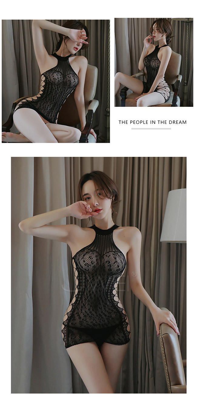 ►您現在的位置:首頁>妖嬈蔓延.性感圓領削肩腰間交織線條鏤空包臀連身裙