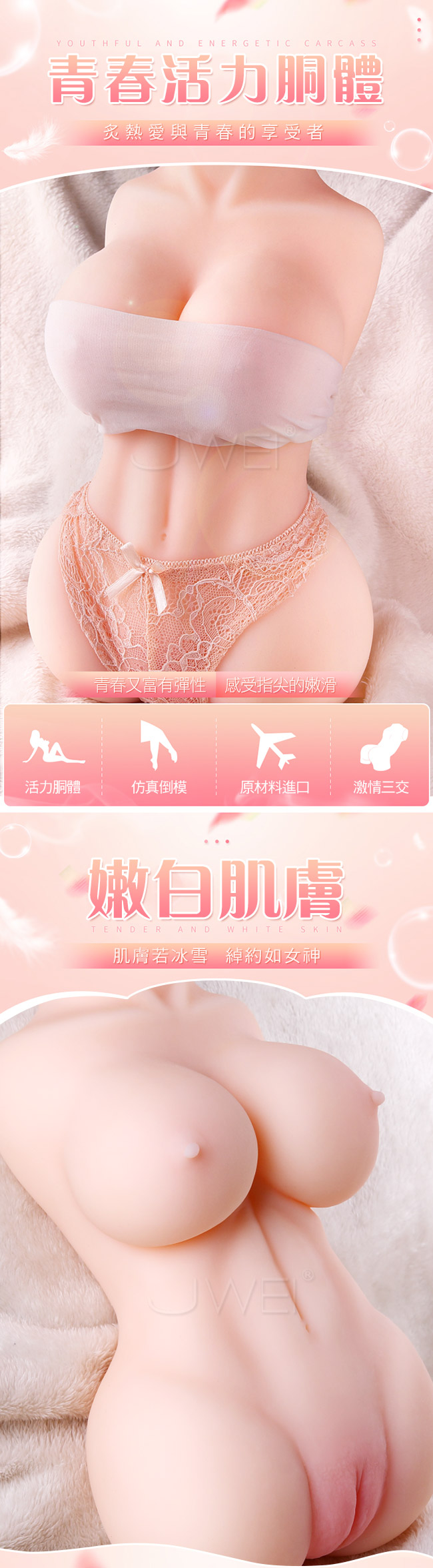 青春活力胴體,青春又富有彈性,感受指尖的嫩滑;嫩白肌膚,肌膚若冰雪,綽約如女神;仿真人比例倒模,只為你更好的體驗及視覺盛宴;能一手掌握的嬌嫩酥胸、青春粉嫩的私處;內置軟管骨架、金屬骨架,模擬人體骨骼展現迷人曲線;仿真雙通道,優化還原,螺紋入口、顆粒擠壓,溫潤的擠壓與包裹如同真人般的體驗!