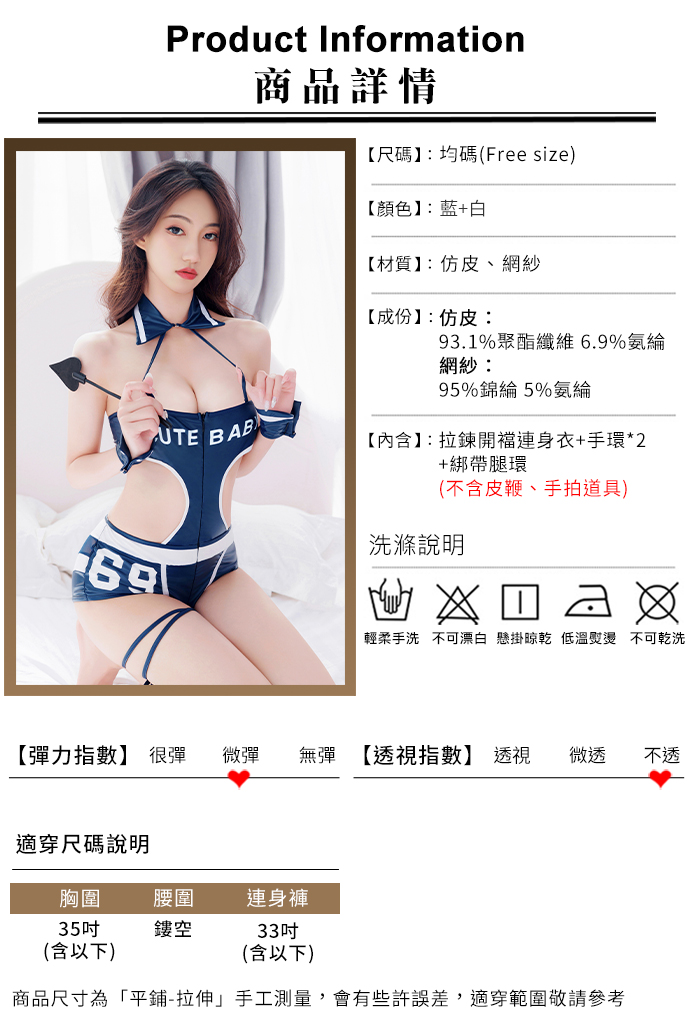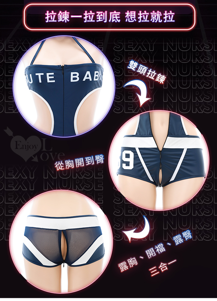 ►您現在的位置:首頁>【賽車女郎】雙頭拉鍊設計裸腰透紗露臀可開襠連身衣三件組