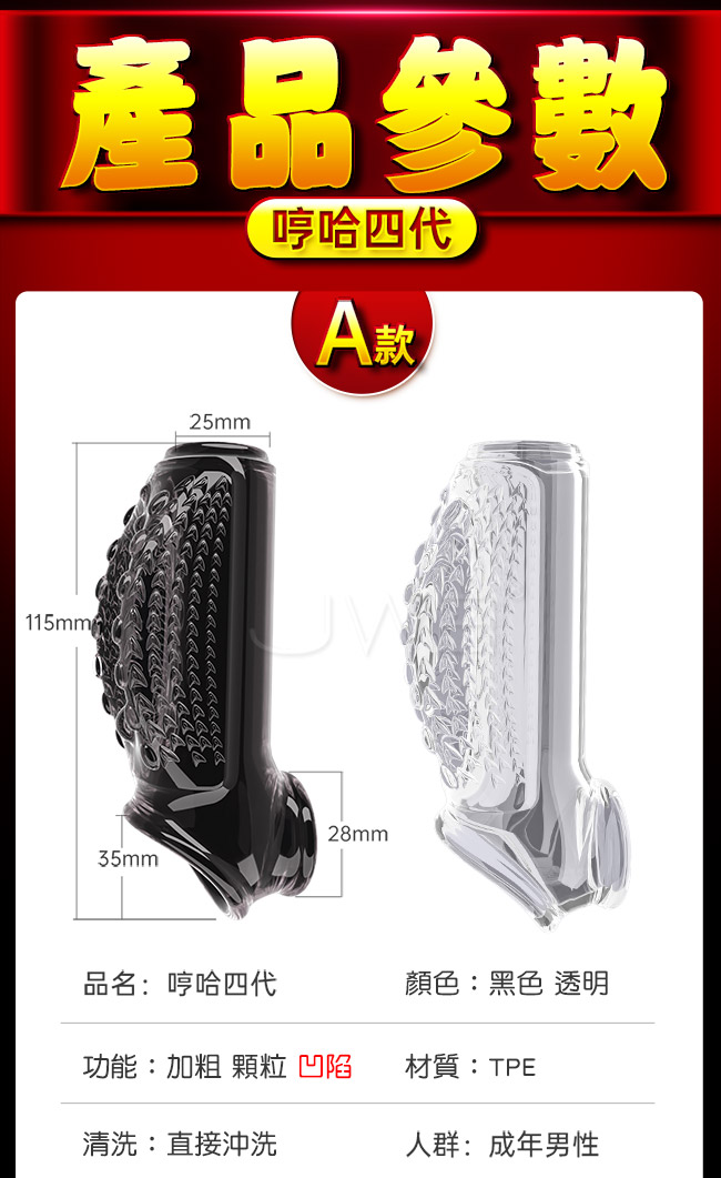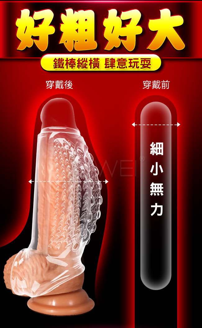 哼哈4代猛男套,顆粒環繞,凸起流線造型,密集水滴顆粒,兩側大圓珠剮蹭,柔軟貼合親 膚;降敏加時,挑戰持續輸出刺激,鎖蛋固莖衝刺不落,加粗加強夠粗夠硬,龜頭依然爽, 肆意玩耍,降低敏感度,摩擦變身猛男!