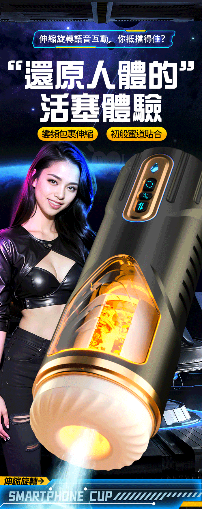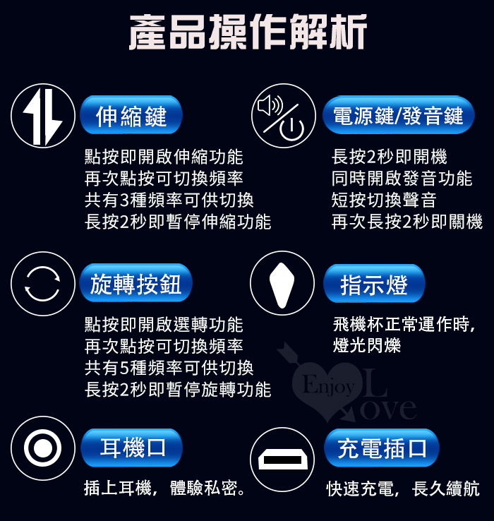 ►您現在的位置:首頁>JIUAI 魔風 進階版 ‧ 3X5伸縮+旋轉 智能活塞全自動自慰杯﹝四國語音呻吟+智能加溫+耳機+USB充電﹞