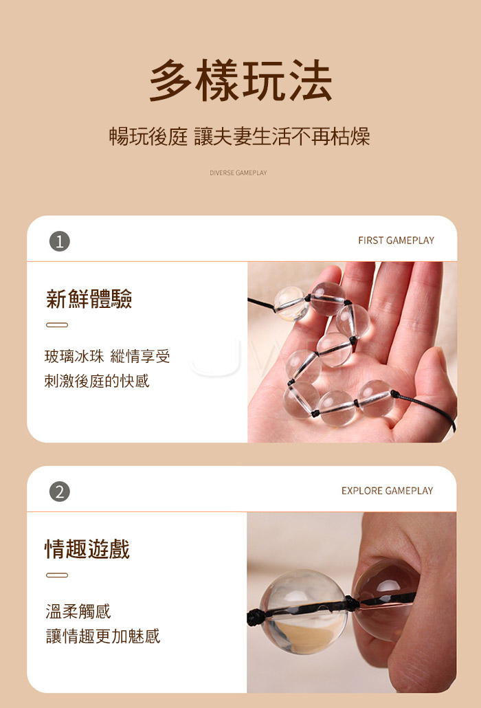 玻璃爆珠暢玩後庭,享受從緊緻到放鬆的激情體驗;冰火雙重奏,冷熱趣 味玩法,通暢新玩法,鬆緊切換磨練後庭,深淺交替,順暢拉出,層層遞 進;拉動的是對愛的渴望,由淺入深,深入私密地帶滿足對長度的要求!