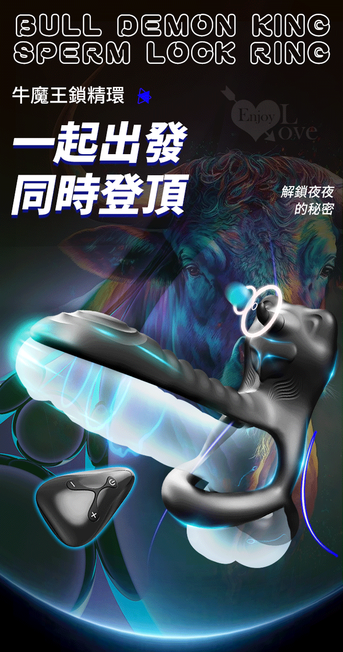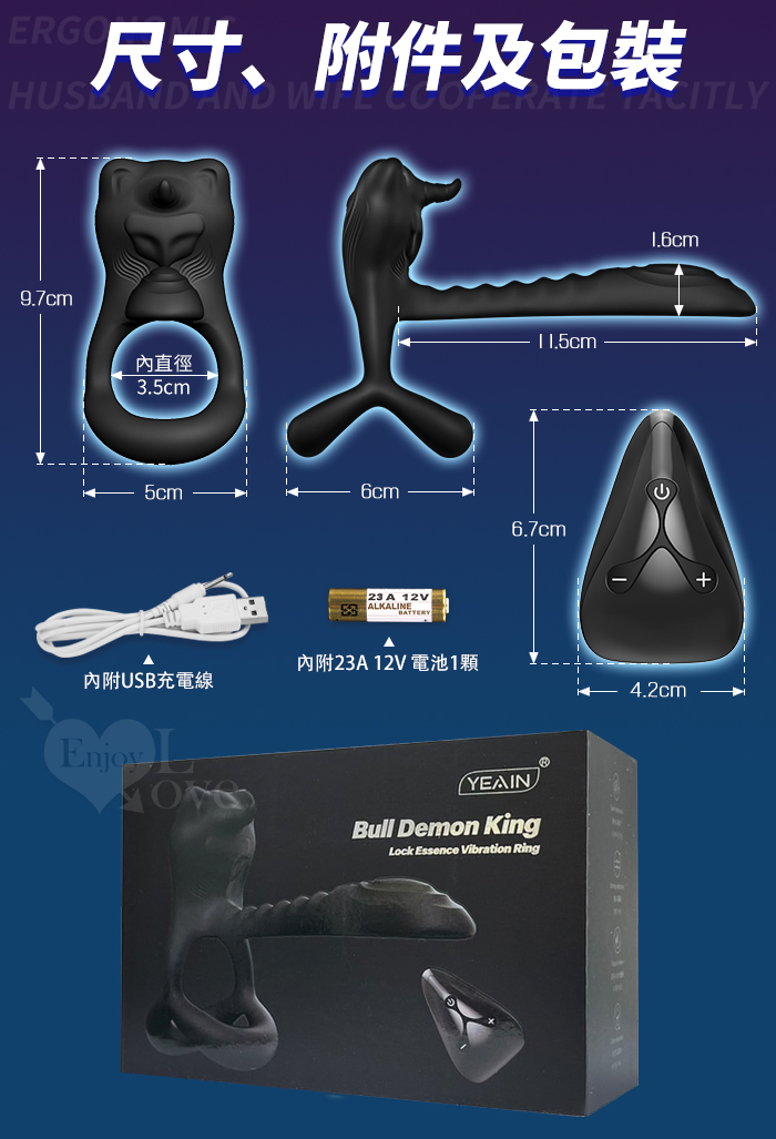 YEAIN夜樱 ‧ 牛魔王 男女同歡按摩震動套環﹝無線遙控/12頻強震/雙環固蛋/聚焦蜜豆/USB充電﹞