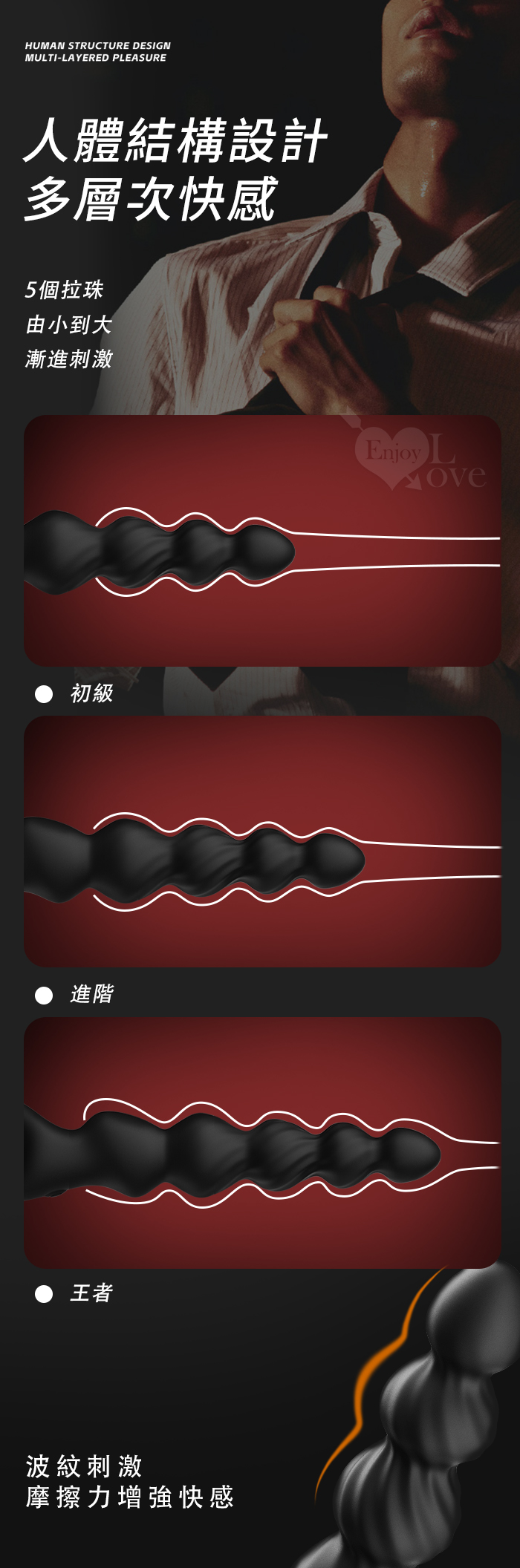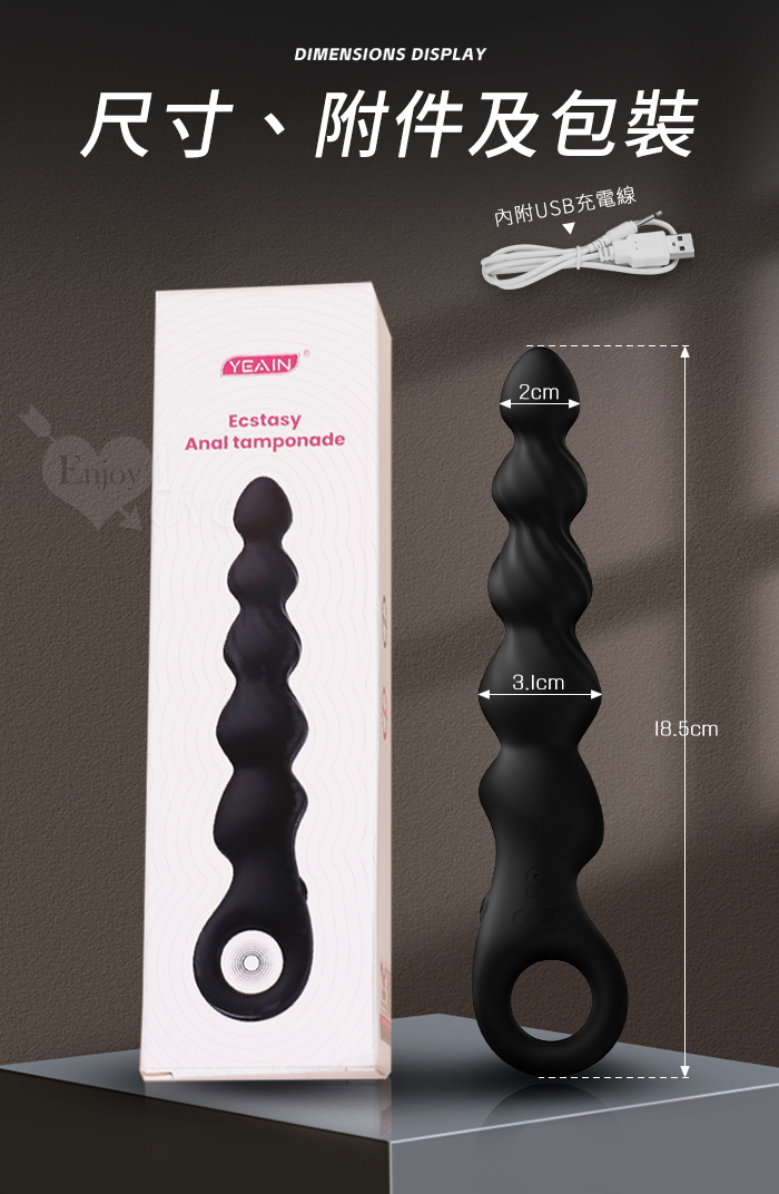 | YEAIN夜樱 ‧ 銷魂拉珠 層層遞進拉環震動按摩棒﹝12頻強震+男女通用+波紋刺激+親膚硅膠+USB充電﹞