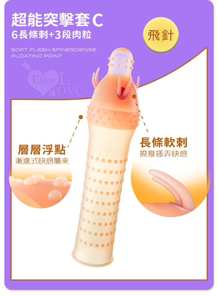 | Enjoy Love ‧ 超能突擊套B 7軟刺+3排20顆粒 輕薄裸入感浮點陰莖套﹝鉚釘﹞