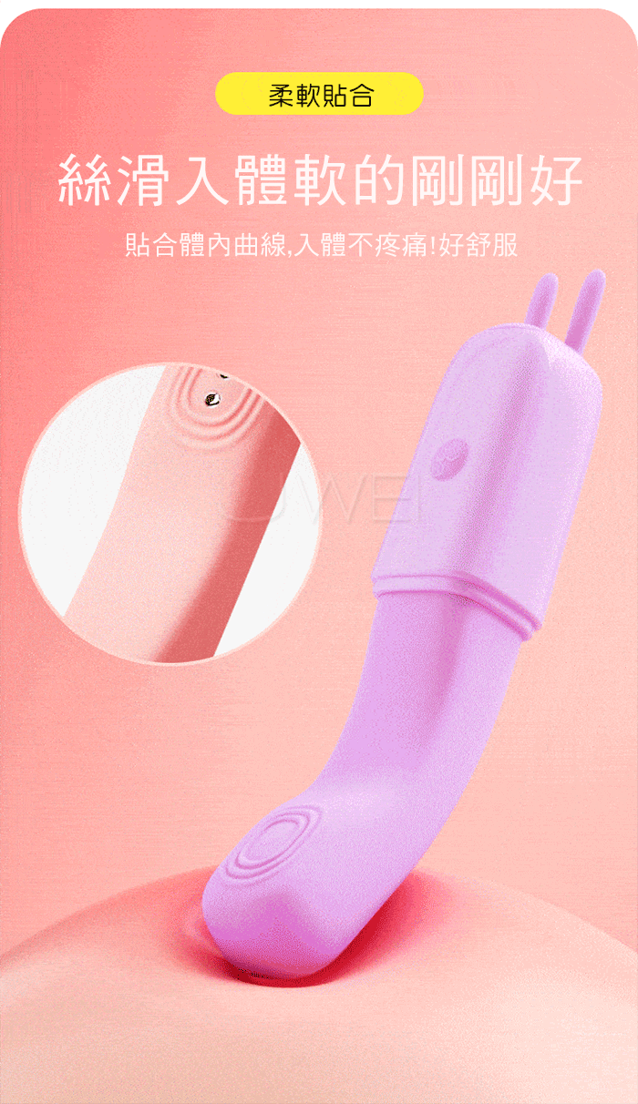 一觸即潮,軟兔震動棒,小巧強震,柔軟Q彈;自動發熱,智能恆溫, 開機自動發熱設計,持續升溫至38度,不會過熱,讓體驗更好;高頻 10頻震動,挑逗每一處敏感點,多種頻率體驗醋暢淋漓;輕巧便攜, 調情玩法,令人雀躍的情趣擔當,如尋寶般觸及每個敏感點,酥麻感遍 布全身;親膚質感,柔軟貼合,絲滑入體軟的剛剛好, 貼合體內曲線 ,入體不疼痛,好舒服!!