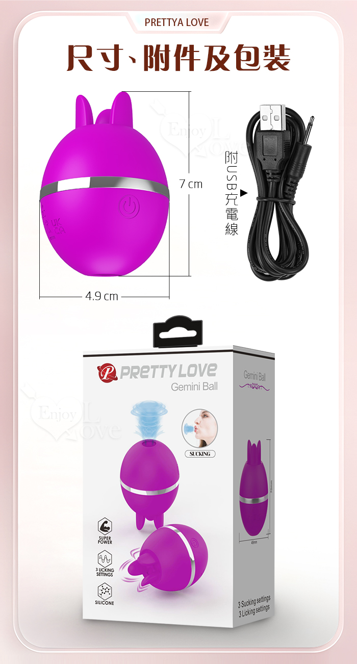 派蒂菈 ‧ Gemini Ball 雙子球 快感加倍 吸吮舌撩擺 自慰調情按摩密器﹝一體兩用/高速舌舔/喚醒吮吸/USB充電﹞