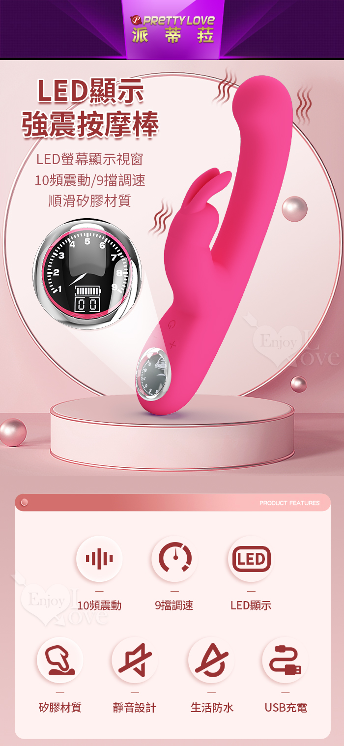 派蒂菈 ‧ Lamar 拉馬爾 LED顯示10頻X9速內外強力雙震G點高潮棒﹝玫瑰紅﹞