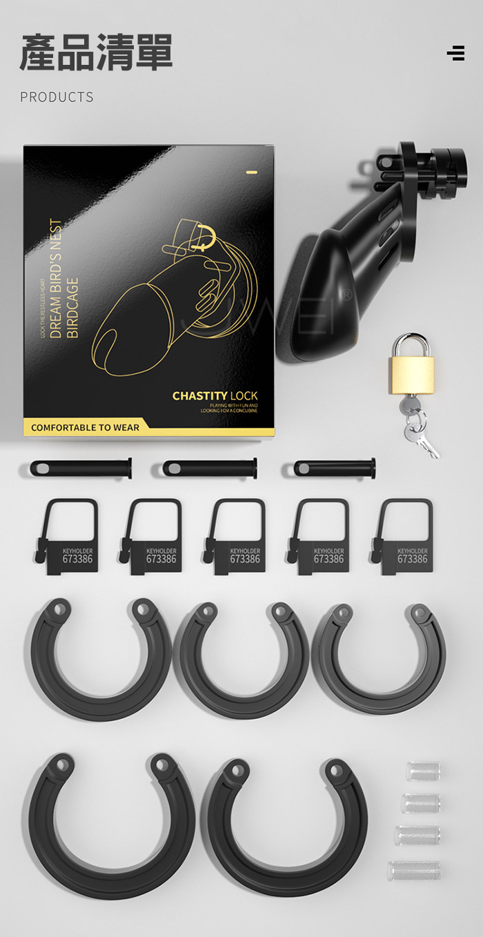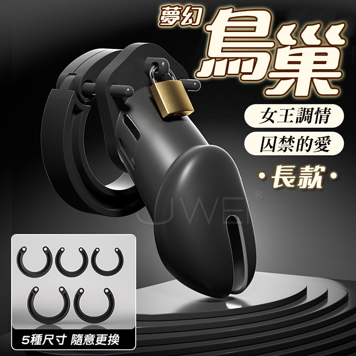 夢幻鳥巢.男用情趣貞操鎖-附可開合弧形5種尺寸卡環﹝長款﹞
