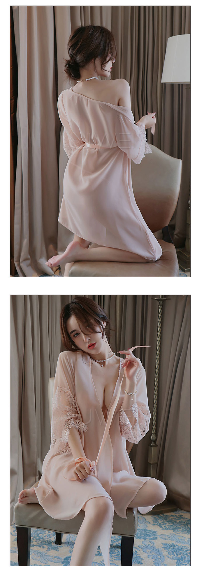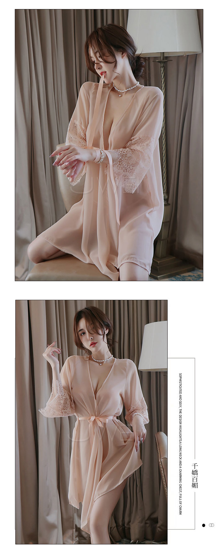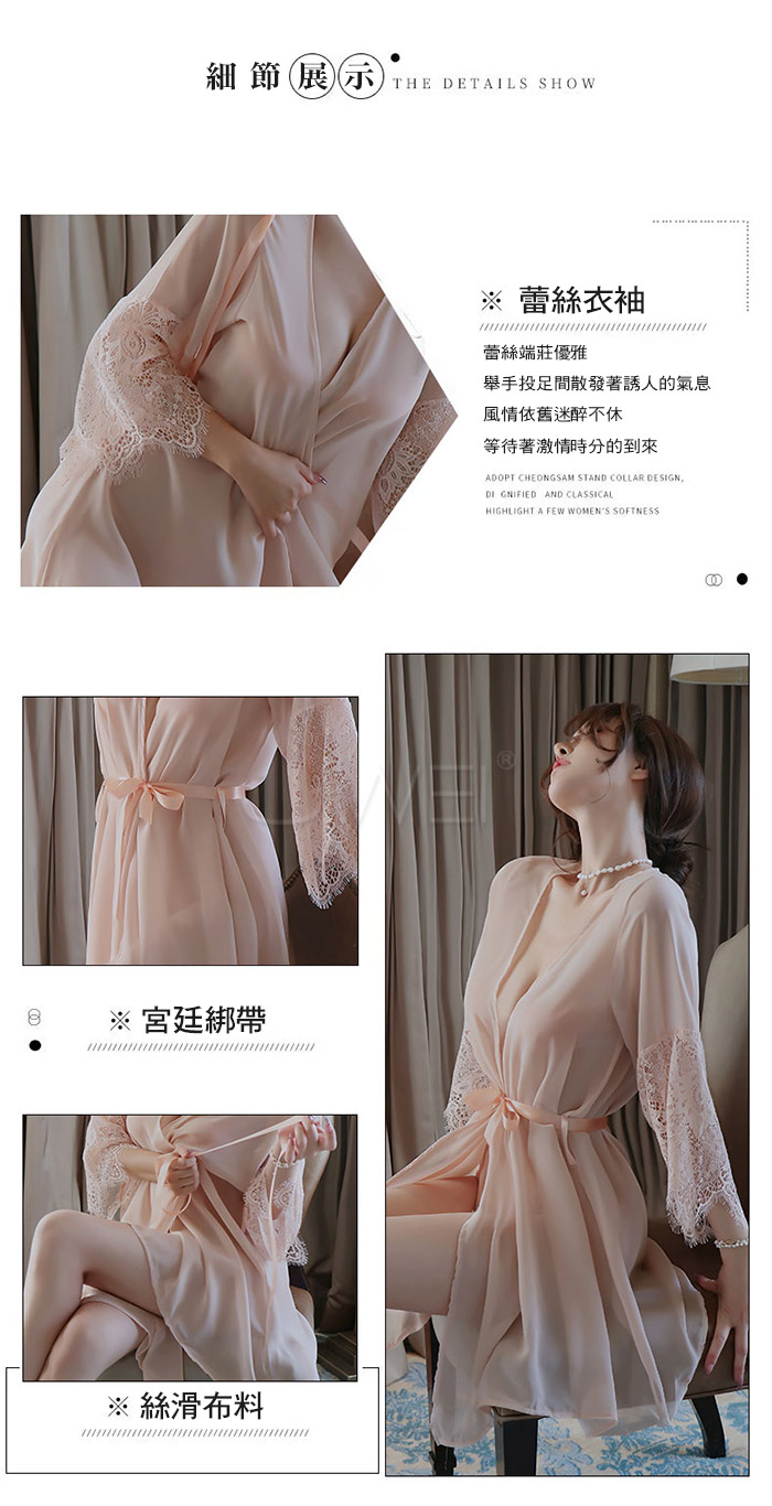 ►您現在的位置:首頁>曖昧風情.光滑冰絲性感透膚蕾絲衣袖宮廷綁帶睡袍(黑色)