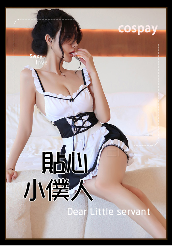►您現在的位置:首頁>蜜琪花園.性感露背露翹臀荷葉邊圍裙女僕套裝2件組