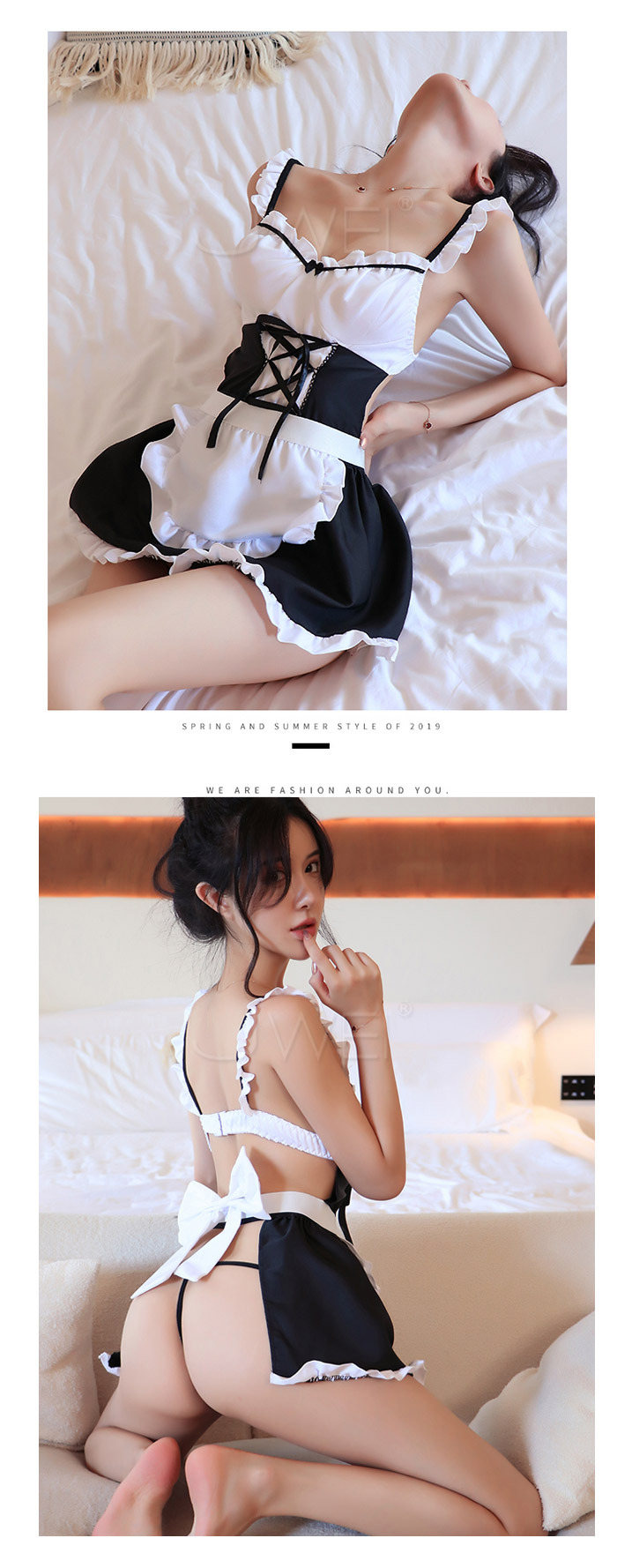 蜜琪花園.性感露背露翹臀荷葉邊圍裙女僕套裝2件組