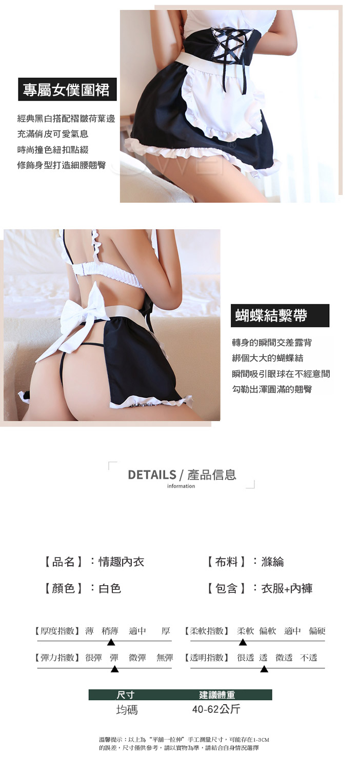 ◇◆蜜琪花園.性感露背露翹臀荷葉邊圍裙女僕套裝2件組◆◇