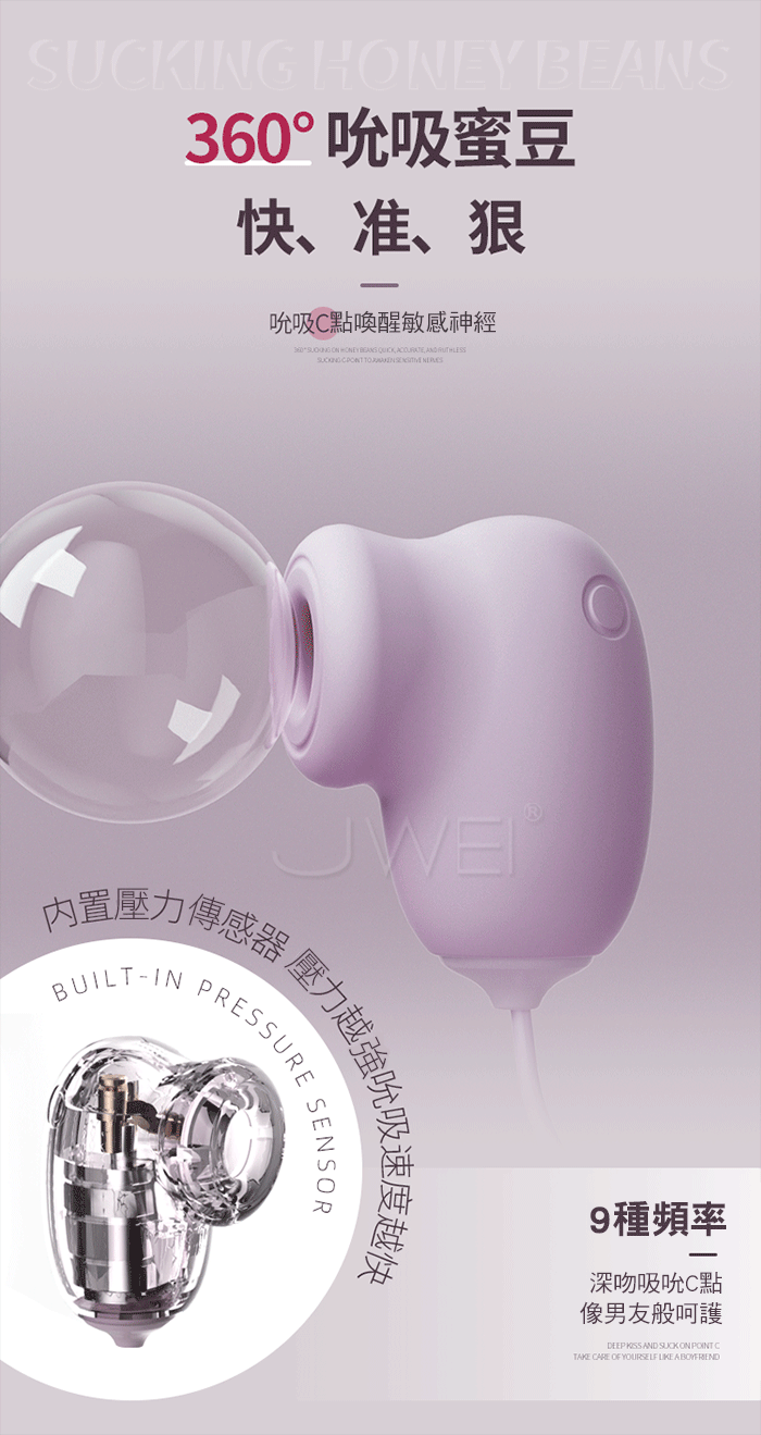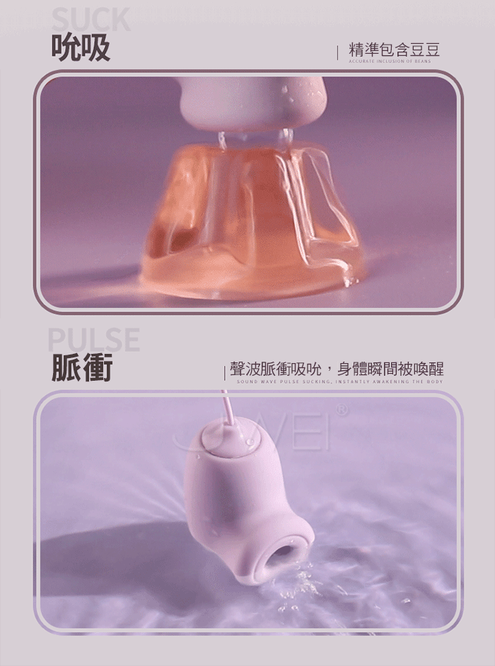 「吮吸強震 雙倍快樂」 C點+G點一次滿足 內外同潮 吮吸與震動多重組合秒速引爆酥麻快感 打開身體的快樂密碼! 「悄悄靜謐 請放心沉浸」 高精度組件降低間隙摩擦聲,並透過實體隔音結構降噪讓噪音低至雙耳難以捕捉。 產品規格 ■尺寸: 大小詳如圖片標示 ■材質:矽膠/ABS ■供電: 遙控充電 ■特色: 高頻震動、生活防水、持久續航
