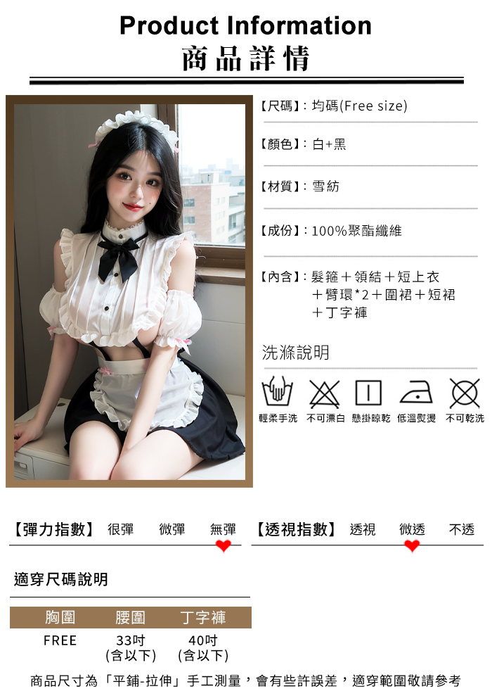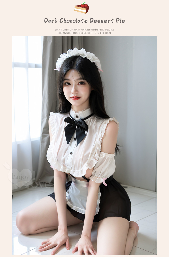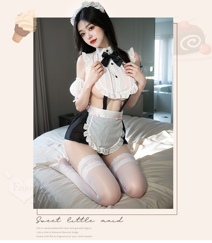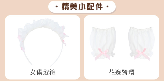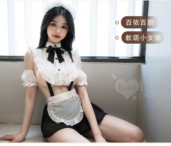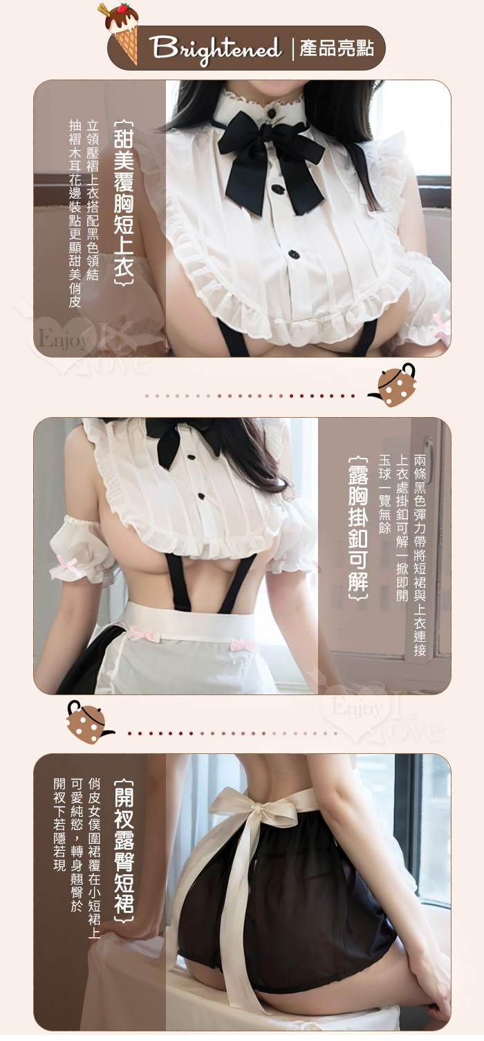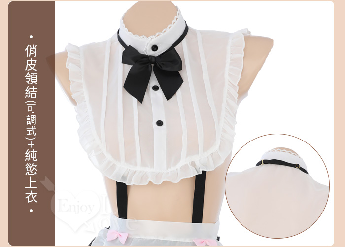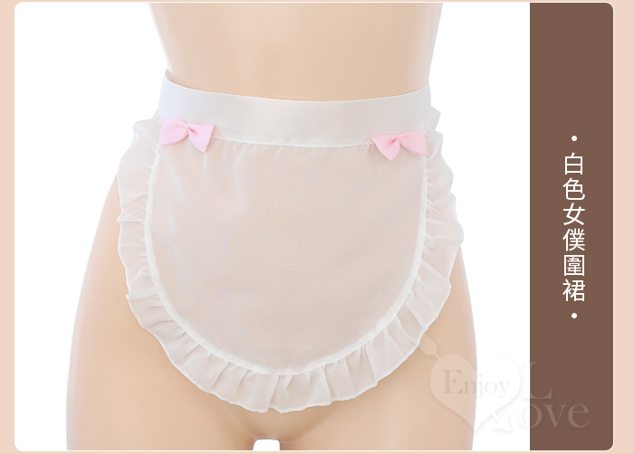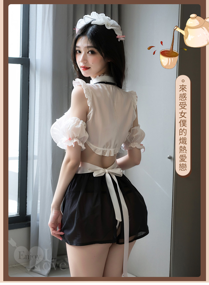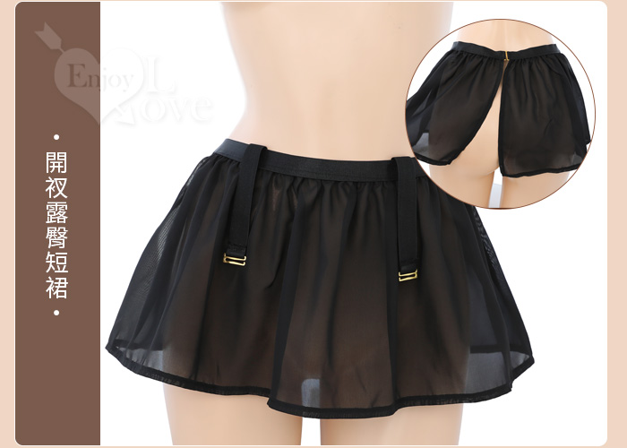 | 女僕角色扮演服!立領抽褶木耳花邊後開衩露臀短裙七件式套裝