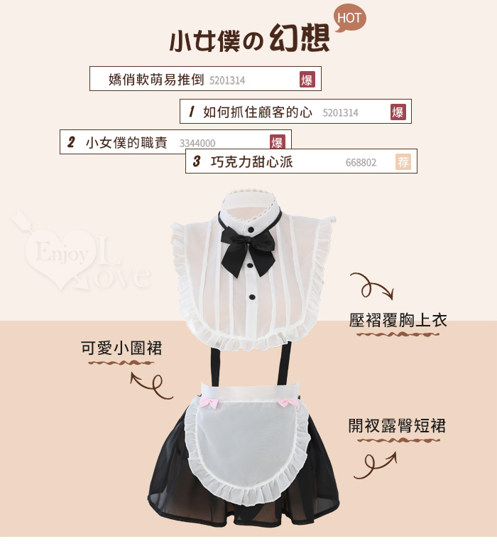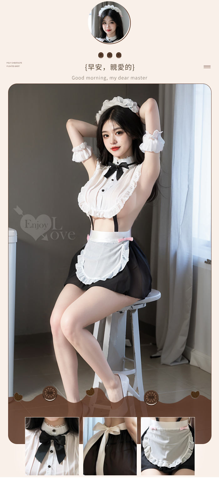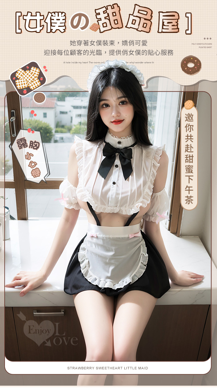 ►您現在的位置:首頁>女僕角色扮演服!立領抽褶木耳花邊後開衩露臀短裙七件式套裝